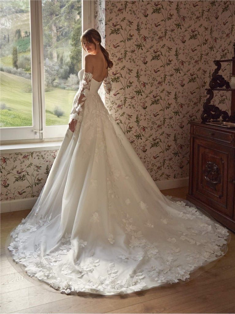 Le se collezioni spaziano dalle linee principesche alle siluette leggere e fluide, realizzate con tessuti pregiati come tulle, mikado, chiffon e organza. Pizzi delicati, ricami luminosi e giochi di trasparenze rendono ogni modello unico e indimenticabile.